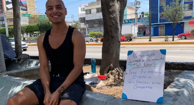 Recorre el Adolfo López Mateos y trata de compartir sus conocimientos con los transeúntes acerca de la ciudades verdes y desde más de un año hace compostaje en las jardineras para que las raíces de los árboles puedan nutrirse después de un proceso de putrefacción.