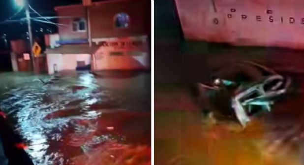 Ciudadanos de la mencionada comunidad tuvieron que subir a las azoteas de sus casas o a un segundo piso desde doble vieron como la fuerza del agua de la presa arrasó con sus vehículos.