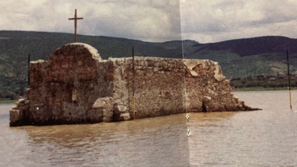 La antigua capilla virreinal está casi en medio del embalse, fue lo único que sobrevivió cuando las autoridades decidieron construir la represa, después, dinamitaron todo. Y solo eso quedó: un viejo edificio en ruinas de calicanto y piedra que ahora es una atracción turística que es visitada en lancha y en motocicleta acuática.