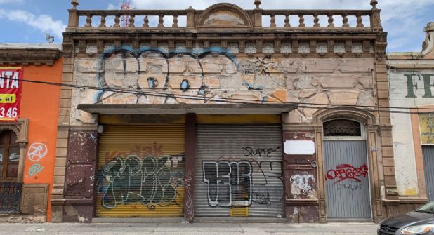 Se distingue de las demás casas por su estilo arquitectónico antiguo de cantera, aunque cae a pedazos como si estuviera desintegrándose en cámara lenta, lentamente, poco a poco, por el paso del tiempo y las inclemencias del clima y el descuido en el que ha quedado la calle.
