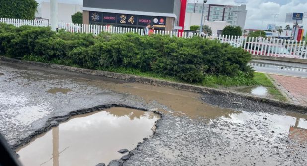 Un bache de varios centímetros de diámetro frente a la plaza Centro Max.
