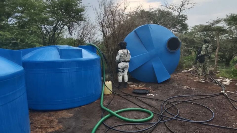 Guanajuato.- La Guardia Nacional y el Ejército Mexicano encontraron un centro de acopio de huachicol en la comunidad de La Quesera de Cortés, en el municipio de Pénjamo.