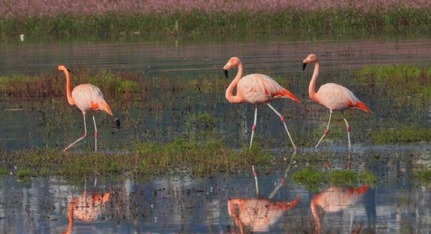 Y las primeras fotografías de la presencia de flamenco fueron realizadas por Luis Mauricio Mena Páramo (Luisave) en el año 2019 quien captó con su cámara fotográfica a flamenco chileno (Phoenicopterus chilensis) en estado silvestre, una especie que se distribuye en Sudamérica con su límite norte en Ecuador a más de 3,000 km de distancia, a vuelo de pájaro (este último dato consultado en la página web de Somos naturalistas.mx).