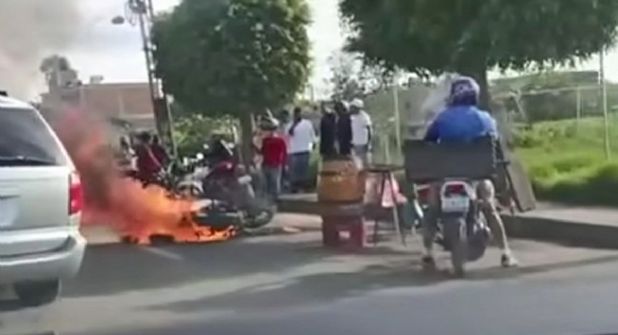 Irapuato.- Un comerciante de aguas frescas y tepache le prendió fuego a la motocicleta de un asaltante que momentos antes lo atacó a balazos para asaltarlo. Todo esto vía pública y a plena luz del día.