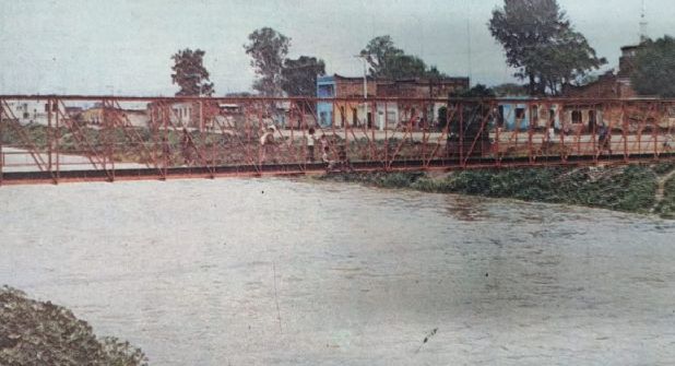 La fotografía pertenece a la hemeroteca del Archivo Histórico Municipal de León (AHML). La imagen revela cómo era el río antes de la construcción de carriles vehiculares que cruzan la ciudad de norte a sur. Era un enorme caudal repleto de agua cuyo borde estaba al pie del caserío que está a un costado del río.