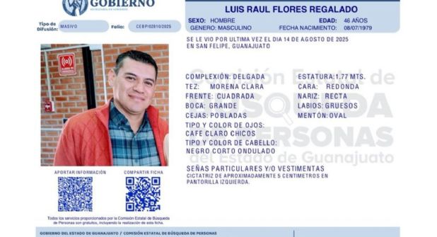 El profesor, abogado civil y originario de León, fue visto por última vez el jueves 14 de agosto, cuando viajó al municipio de San Felipe, presuntamente por motivos de trabajo. Ese mismo día, alrededor de las dos de la tarde, su familia perdió comunicación con él y horas más tarde se presentó el reporte oficial de desaparición.