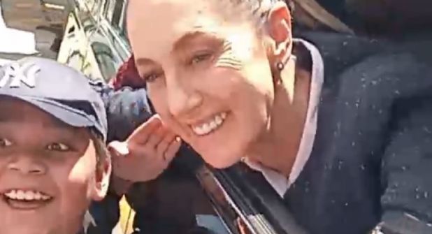 Ahí ya la esperaban una decena de simpatizantes entre ellos niños quienes tuvieron la oportunidad de saludar a la mandataria de cerca y hasta se tomaron una foto con Claudia.