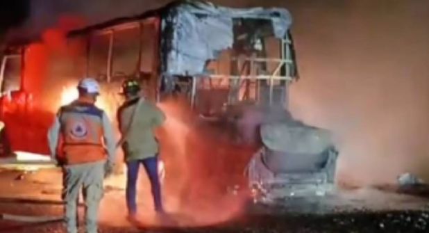 El fuego se extendió hacia el autobús del que bajaron rápido los pasajeros, sin embargo, tres personas resultaron lesionadas, entre ellas un menor de alrededor de 4 años de edad.