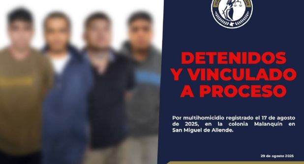 Por su parte, la Fiscalía General del Estado de Guanajuato informó que lo anterior fue el resultado de trabajos estratégicos de investigación e inteligencia jurídica realizados por esta Institución, con los que se logró identificar, ubicar y capturar a los integrantes de una célula criminal presuntamente relacionada con el multihomicidio.