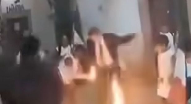 Para evitar quemarse, el alcalde soltó la antorcha que tenía el fuego simbólico, de la conmemoración de la Independencia de México y esta cayó al suelo expandiéndose.