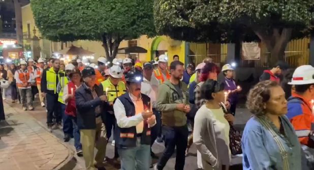 Los mineros participantes en la marcha portaban velas y pancartas en donde exigían justicia por sus compañeros desaparecidos en Sinaloa y además pedían seguridad y condiciones dignas y seguras para quienes laboran en las minas del país.