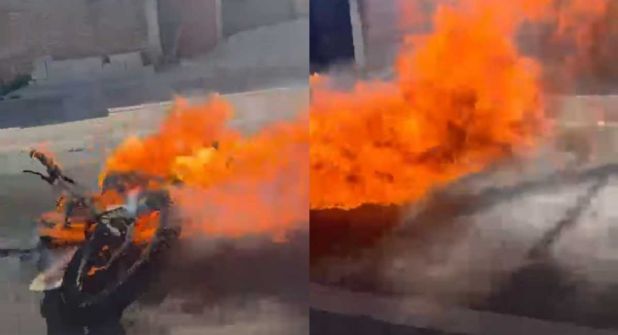 En redes sociales, ciudadanos de la zona captaron la motocicleta quemándose en su totalidad, luego de chocar contra un taxi.