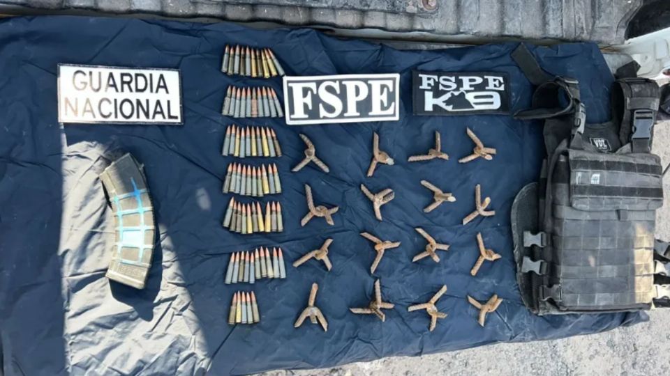Tras interceptar la unidad, los agentes realizaron una inspección preventiva y localizaron diversos objetos relacionados con actividades delictivas, entre ellos municiones, equipo táctico y artefactos conocidos como “ponchallantas”, utilizados para dañar neumáticos y detener vehículos.