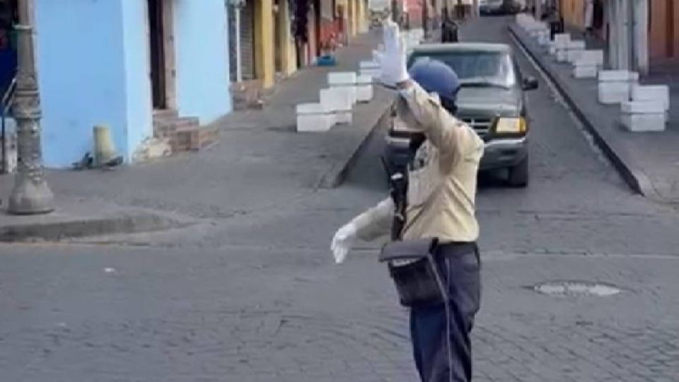 “Sí somos los oficiales, es que como es zona peatonal”, explicó unos de los oficiales mientras daba el paso a una patrulla con el sonido del silbato y haciendo la seña de seguir circulando