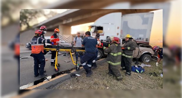 El accidente también dejó cuantiosos daños materiales, siendo la camioneta la más afectada, al quedar prácticamente inservible tras el impacto con el tráiler.