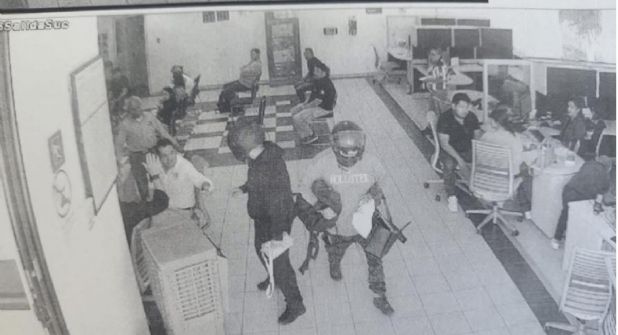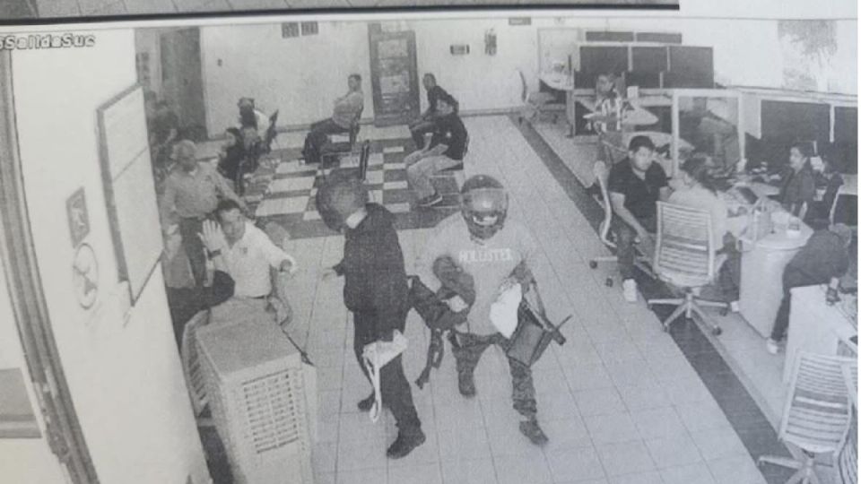 Cámaras de seguridad de la institución bancaria lograron captar el momento del atraco a clientes, sin embargo, no se pudieron apreciar sus razgos por los cascos y pasamontañas que llevaban.