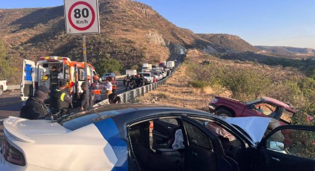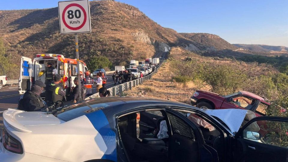 El incidente fue a la altura de la comunidad de San José de Pinos, donde se impactó una camioneta Ford Explorer con placas de Guanajuato con una patrulla de la Policía Estatal de Caminos, en el kilómetro 19, este sábado por la tarde.
