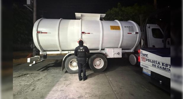 La pipa fue hallada por elementos de la Policía Estatal de Caminos, quienes se encontraban realizando un recorrido de vigilancia. La unidad fue ubicada en una estación de servicio, abandonada.