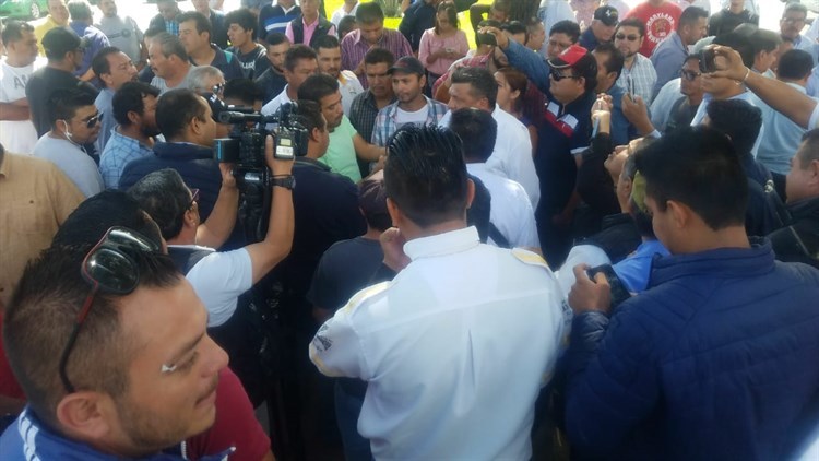 Previo a la llegada del Secretario, elementos de Tránsito Municipal amenazaron a los taxistas manifestantes a que sí no se movían y despejaban por lo menos un carril se llevarían los vehículos. Los trabajadores del volante hicieron caso omiso y comenzó la revuelta, ya que los tránsitos anclaron unos cuantos taxis a las grúas.
