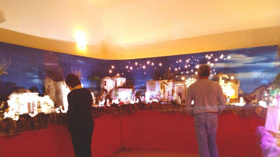 ‘El Nacimiento de Belén’ es otro de los más llamativos en la exposición. Pues las figuras están talladas en madera de olivo, una especie que abunda en Palestina, por los árboles de olivo. La escenografía que rodea a los peregrinos parece una cueva de piedra, pero así pintaron el material, con la intención de dar un aspecto más real.