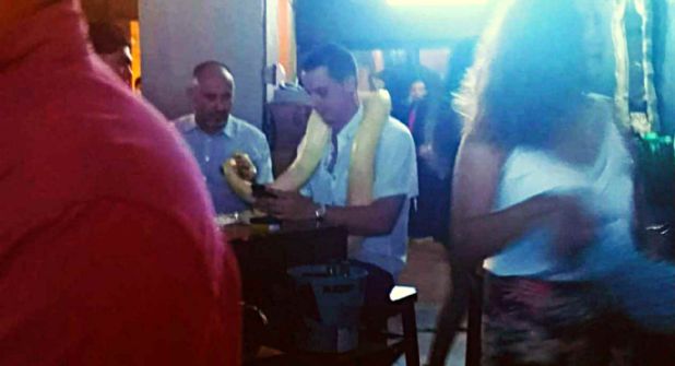 La cervecería estaba llena, la música a todo volumen y la gente divirtiéndose. Desplazarse por los pasillos del local era difícil, pero no fue impedimento para que la víbora fuera el foco de la fiesta en cada una de las mesas.