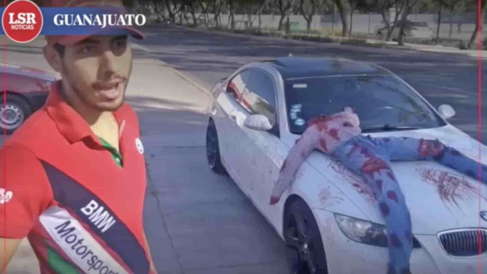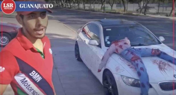 Tal como el coro de la antigua canción de rock cantada por la Maldita Vecindad, con un -“poco de sangre roja, sobre un gran auto nuevo”- el BMW de este joven irrumpió la escena cotidiana.