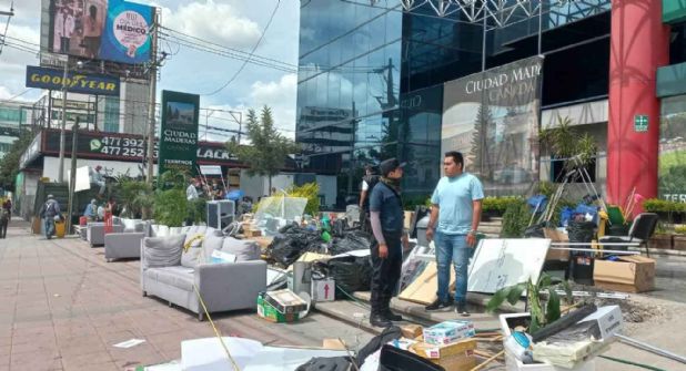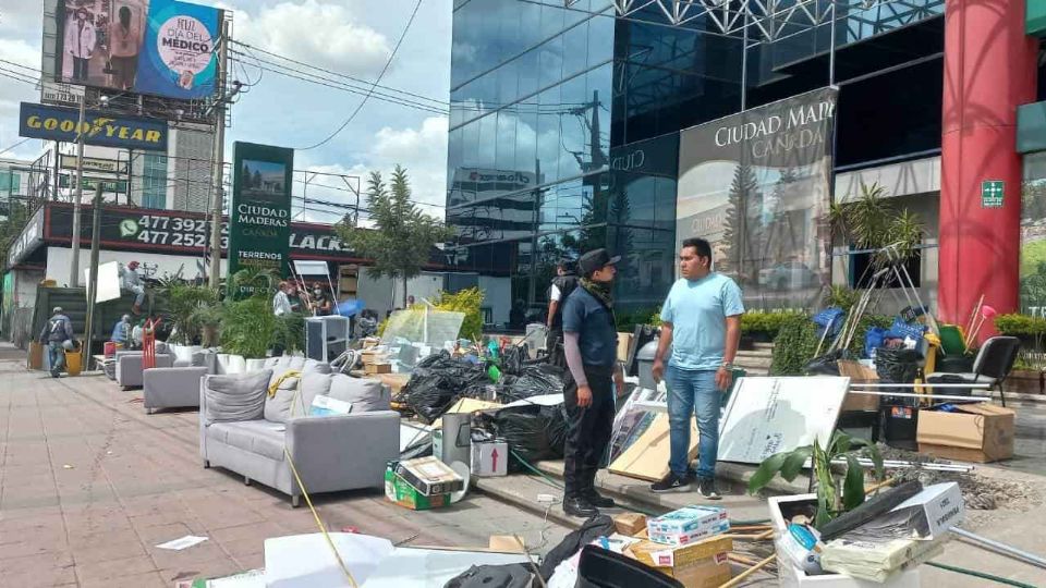 En la banqueta del bulevar López Mateos, frente al Hotel Stadium, podían encontrarse sillones, sillas, escritorios, cajones, casilleros, carpetas, gel antibacterial, escobas, trapeadores y hasta plantas. En la entrada del edificio había oficiales de policía resguardando la puerta.