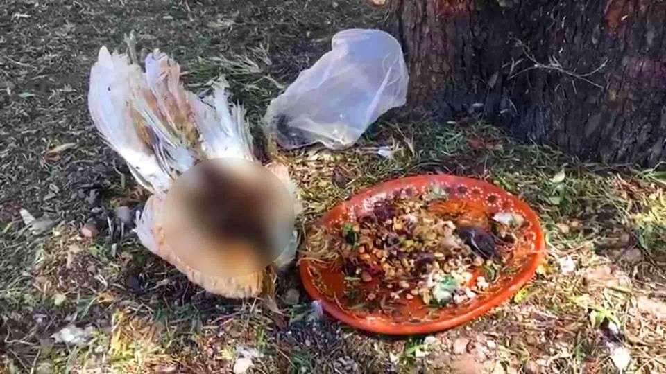 León-. En un plato color café hay granos, semillas de elote, cacahuate, hierbas de aroma, pedazos de carne y la cabeza de una gallina. Sobre el recipiente escurre la sangre del indefenso animal, así es la escena detectada por los vecinos de la colonia Villa Insurgentes.