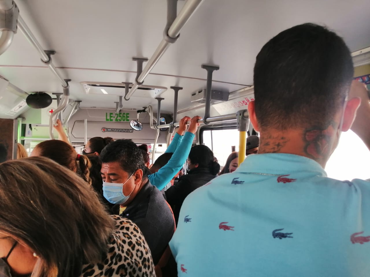 A 15 meses de la llegada de la pandemia, y con 44 mil 423 casos confirmados de covid-19, viajar en el transporte público contrasta con lo que piden las autoridades sanitarias: mantener la sana distancia.