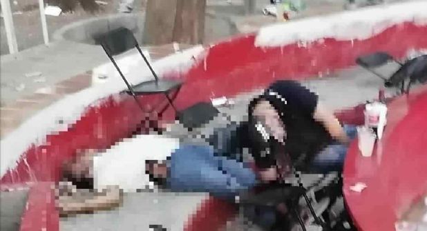 Uno de los fallecidos quedó sentado en su silla, ante las bebidas que estaba consumiendo; el otro cayó boca arriba sobre la orilla del redondel, con una lata de cerveza en la mano izquierda.