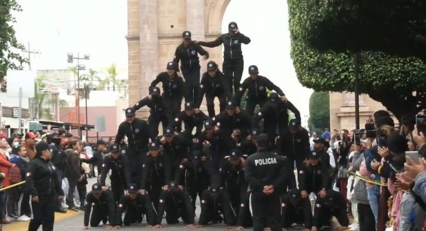 Encabezaron el desfile las fuerzas de seguridad municipales, Tránsito, Policía y Protección Civil y Bomberos, a pie, en patrullas, ambulancias, motocicletas, motobombas, con canes entrenados, realizando impresionantes tablas gimnásticas y acrobacias en moto. Los siguió el grupo de La Cruz Roja con su personal de voluntarios y ambulancias.