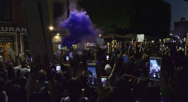 18:42: La manifestación ahora camina rumbo a la Plaza Principal.