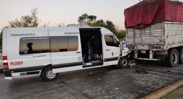 En ese momento una camioneta de transporte de personal, perteneciente a la empresa Diamante, que se dirigía a la empresa donde laboran los trabajadores se impactó contra la parte posterior de la pesada unidad.