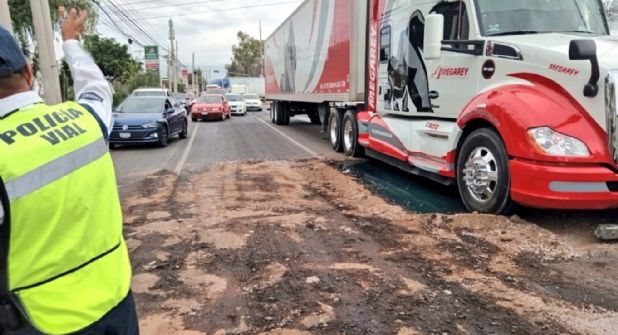 El percance afecta la circulación en toda la zona, que se ve afectada incluso para quienes circulan de oriente a poniente y viceversa por los bulevares Juan José Torres Landa y Timoteo Lozano.