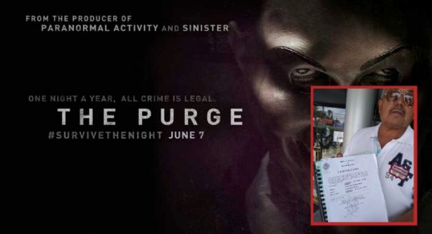 León.- Pedro Longinos, un maestro de escuela radicado en Dolores Hidalgo, asegura que la exitosa saga cinematográfica La Purga (The Purge) está inspirada en una novela de su autoría, sin que le hayan dado el crédito correspondiente. Entabló una demanda de plagio ante el Instituto Mexicano de la Propiedad Industrial, contra la productora Blumhouse, la distribuidora Universal y el director James DeMonaco, quien también es el guionista de las 5 películas.