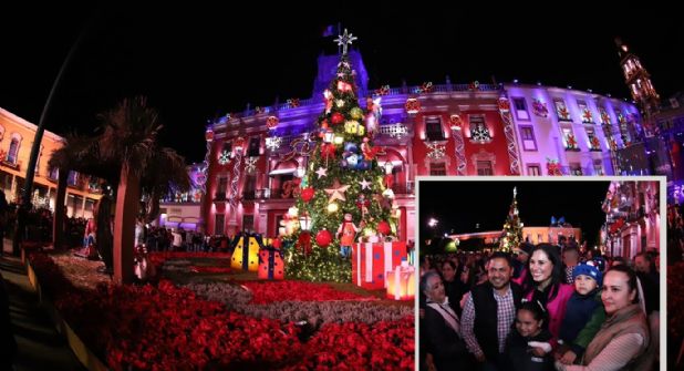 La alcaldesa Alejandra Gutiérrez inició el recorrido navideño en el Arco de la Calzada, posteriormente por el Templo Expiatorio y hasta llegar a la Plaza Principal, en donde cientos de personas esperaban ansiosas el conteo regresivo para encender el tradicional árbol navideño.