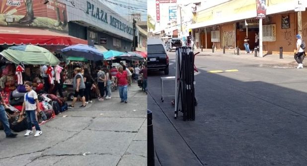 Y los locatarios ya se organizan para buscar una forma de seguir vendiendo en las calles. Mauricio Amézquita, propietario de locales de venta de calzado en la plaza Granaditas, aseguró que al menos él ya estaría desde este martes 14 de febrero otra vez con su puesto en la calle: exhibidores para mostrar su producto y lograr ventas que le permitan salir adelante.
