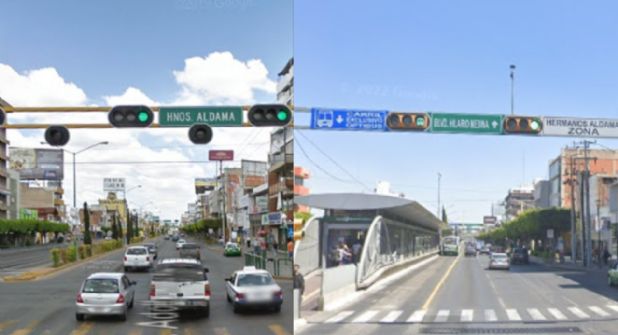 En el cruce con el bulevar Juan Alonso de Torres también se distingue un cambio notorio. Los árboles y señalamientos que hoy destacan en la zona tampoco estaban en aquel 2009. Fue paulatinamente entre 2012 y 2014 cuando la zona fue restaurándose llegando al punto de cómo luce hoy.