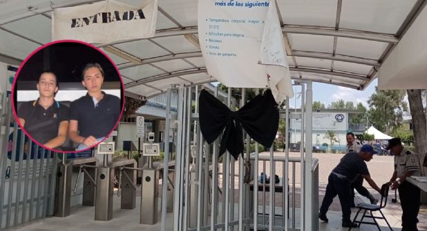 León.- Un crespón en la puerta de la escuela hace patente el dolor de la comunidad educativa en el CBTIS 225, que perdió a 2 de sus alumnos de cuarto semestre en un accidente la madrugada del lunes, al ser chocados en su auto por un Mustang manejado por un joven ebrio.