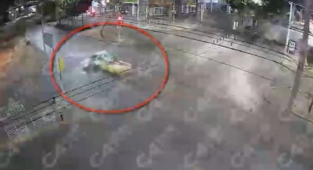 En ese momento se observa cuando un vehículo conducido a gran velocidad choca contra el taxi que salió lanzado y volcado hacia el área de la ciclovía que divide los carriles bulevar Las Torres, en tanto que el vehículo que lo impactó se detuvo metros adelante, cuando circulaba hacia el bulevar Hidalgo.