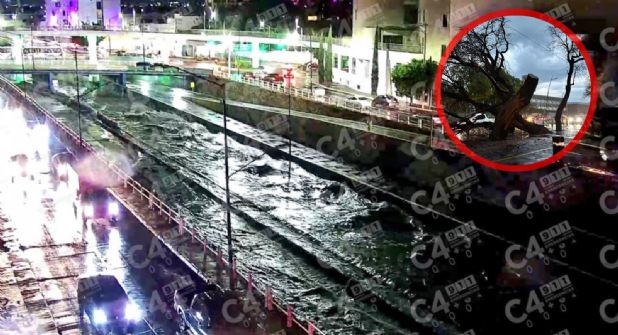 León-. Un fuerte aguacero sorprendió esta tarde, poco después de la 7:30 p.m. llegó un dura tromba en la ciudad acompañada de fuertes ráfagas de viento, el agua cayó tan duro que no podía verse más allá debido a la tempestad. Protección civil cerró vialidades como el Malecón y Timoteo Lozano.