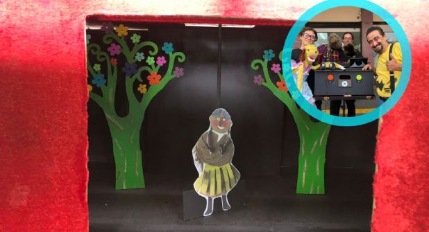 Las personas se acercan con curiosidad, quizá se pregunten ¿qué habrá dentro de esa caja con 2 orificios? Así los artistas del títere acercan a los leoneses a la cultura.