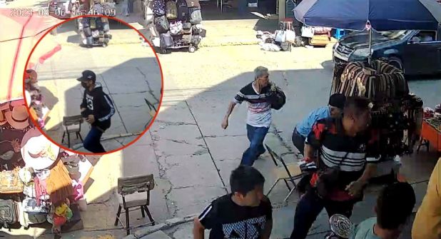 Un segundo video no alcanza a mostrar el momento del crimen, pero sí cuando comerciantes y transeúntes de la calle Taxco corren despavoridos al escuchar los balazos. Una señora se lleva empujando a su hijo, entre jóvenes y adultos que tratan de ponerse a salvo. Un vendedor semifijo, adulto mayor, se agacha atrás de su puesto al momento en el que pasa corriendo el delincuente, quien logra darse a la fuga entre la multitud.