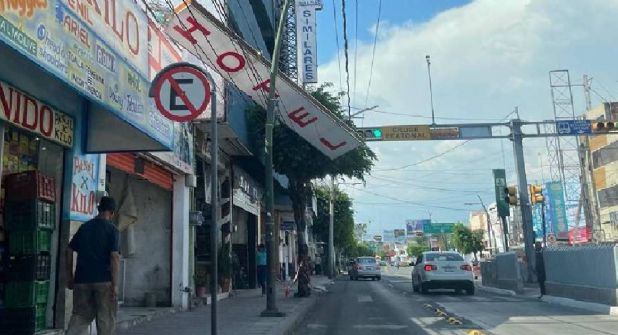 El espectacular, con la leyenda “HOTEL” quedó suspendido sobre al menos 6 cables de electricidad y de diversos servicios, y se pudo observar a la gente que despreocupada caminaba por debajo del anuncio, pese al riesgo latente.