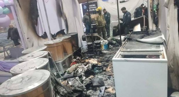 Aparentemente un corto circuito en el local de nieves ‘La Flor de Dolores’, en el Pabellón Guanajuato fue el que provocó que otros cinco locales resultaran afectados.