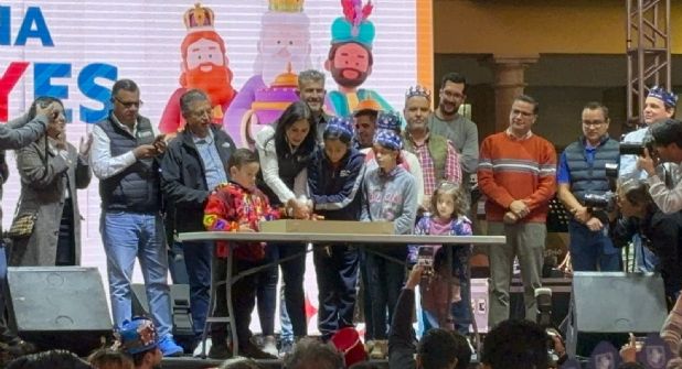 Ale Gutiérrez deseó un buen inicio de año a los leoneses y posteriormente partió y repartió una rosca de reyes con niños y los regidores del ayuntamiento.