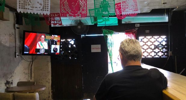 Ernesto observaba el mensaje de la presidenta de México, espera que la vaya bien al país: “Ojalá que sea lo mejor para todos, todo depende del gobierno que nos vaya bien, y salir de pobres y que aumenten el salario, no aumentó nada, aquí en León no aumenta, me dan 150 ¿Tú crees que me voy a mantener con 150? Ellos dicen que aumentan, pero no lo aumentan los patrones” dijo el barman del Bar el amigo en una barra casi solitaria en donde al fondo de un hombre también observaba sin interés con una caguama.
