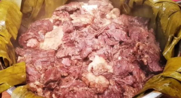 La barbacoa es preparada al Estilo Hidalgo, es decir, bajo tierra, cubierta con hojas de maguey y cocinada a fuego lento.