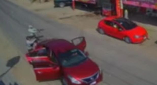 Al final del video se puede observar también un auto en color blanco, cuyo conductor detuvo la marcha de manera sospechosa a un costado del auto rojo, para enseguida seguir su marcha.