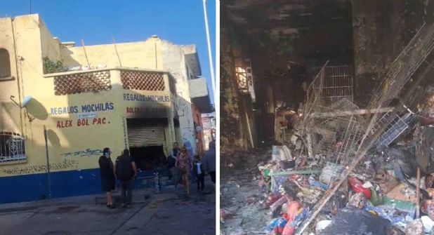 El incendio se registró a las 4:30 de la madrugada de este viernes 15 de noviembre en un local de venta bolsas para dama y otros artículos ubicado en la esquina de las calles Valverde y Téllez y Valenciana a una cuadra del Parque Hidalgo en la colonia Industrial.
